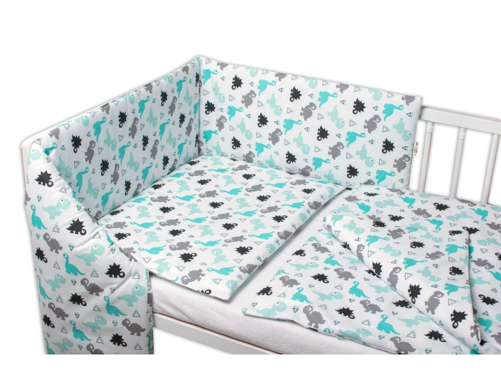 3-dílná sada, mantinel s povlečením Dinosauři - bílá, 120x90 cm