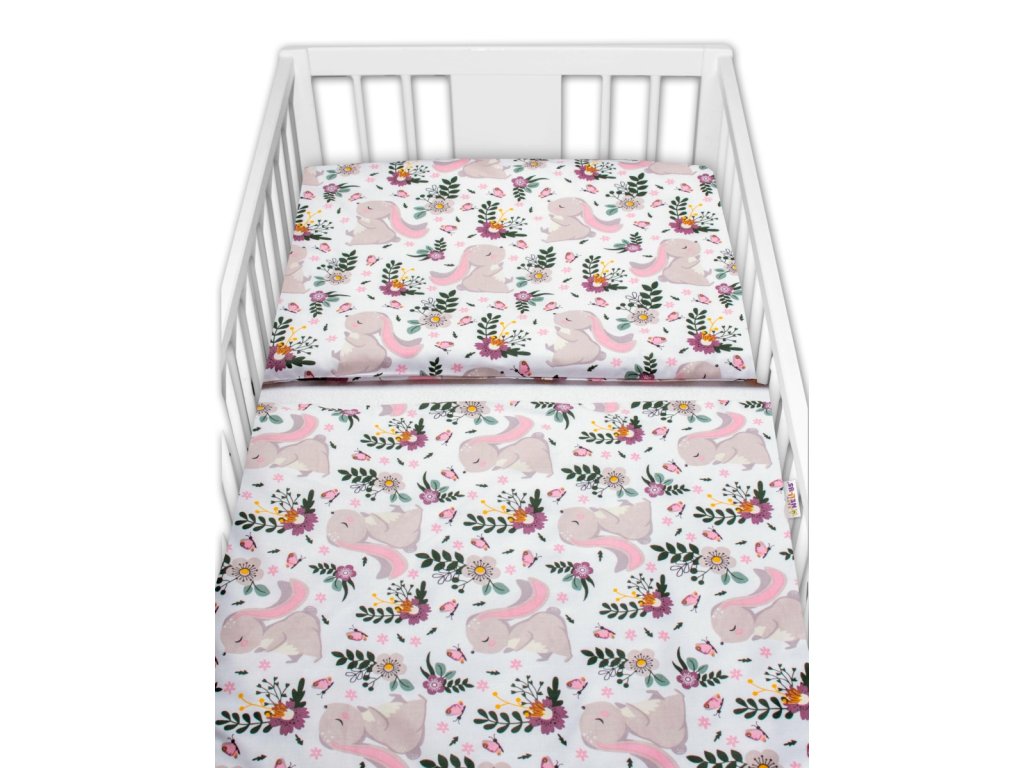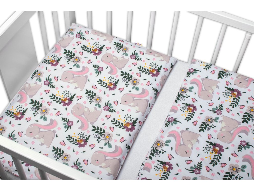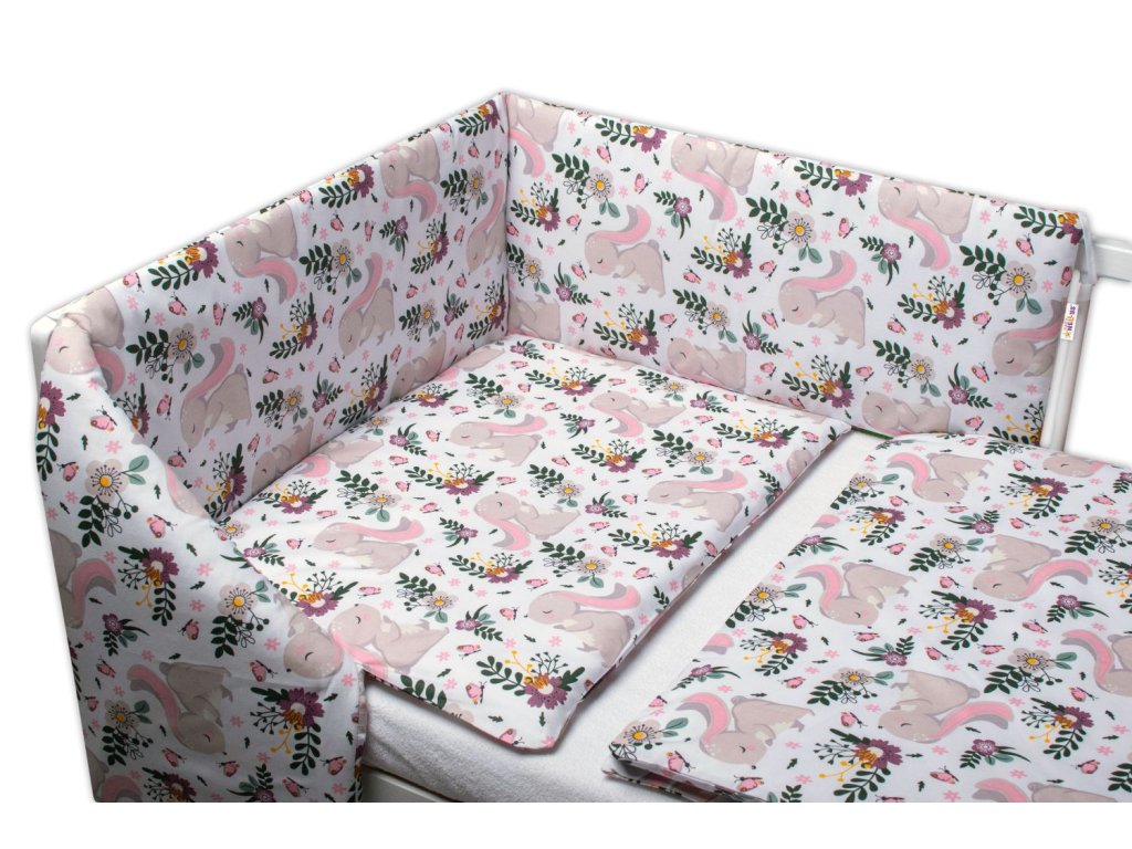 3-dílná sada, mantinel s povlečením Králíček na louce - růžová, bílá, 120x90 cm
