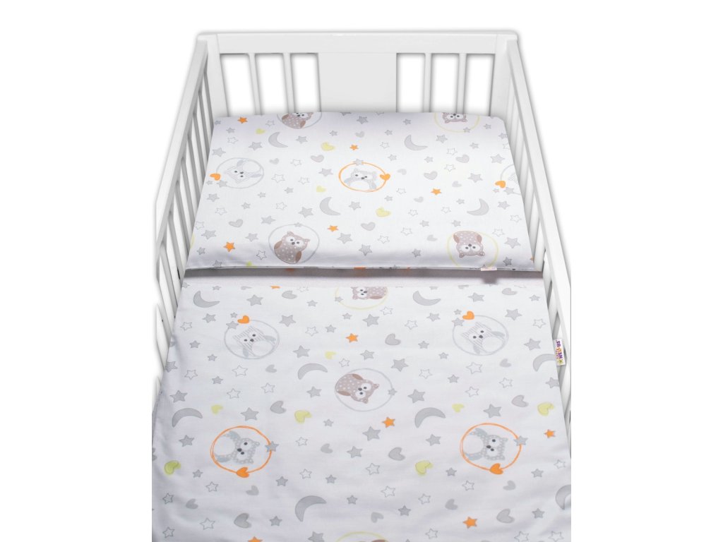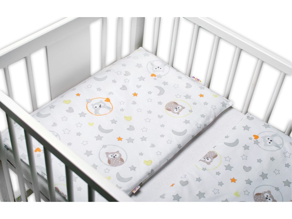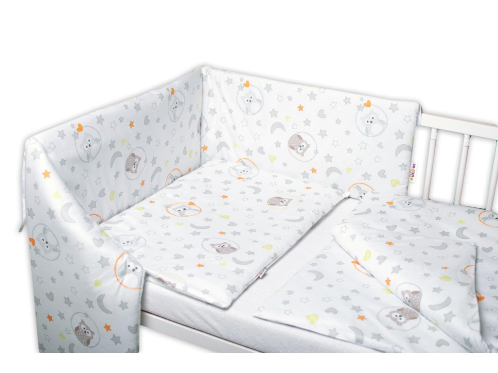 3-dílná sada, mantinel s povlečením Sovičky - bílá, 120x90 cm