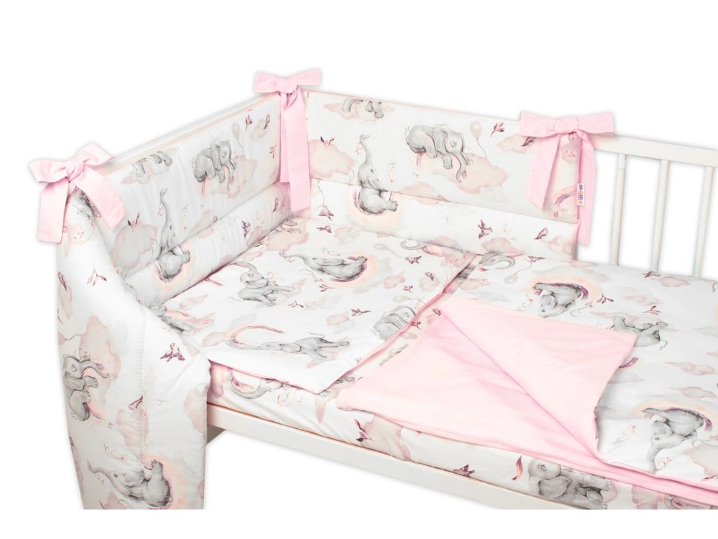 3-dílná sada Mantinel s povlečením Baby Nellys, Slon a Duha, růžová/bílá