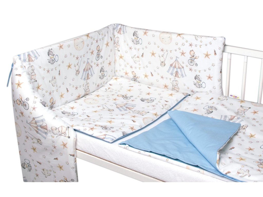 3-dílná sada Mantinel s povlečením Baby Nellys Cirkus, modrá/bílá