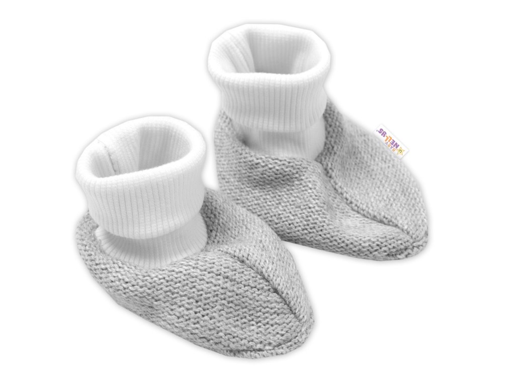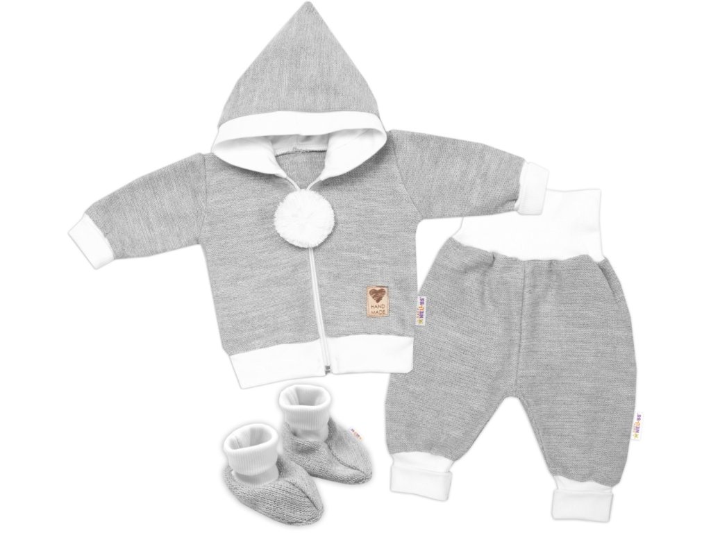 3-dílná souprava Hand made, pletený kabátek, kalhoty a botičky, šedá