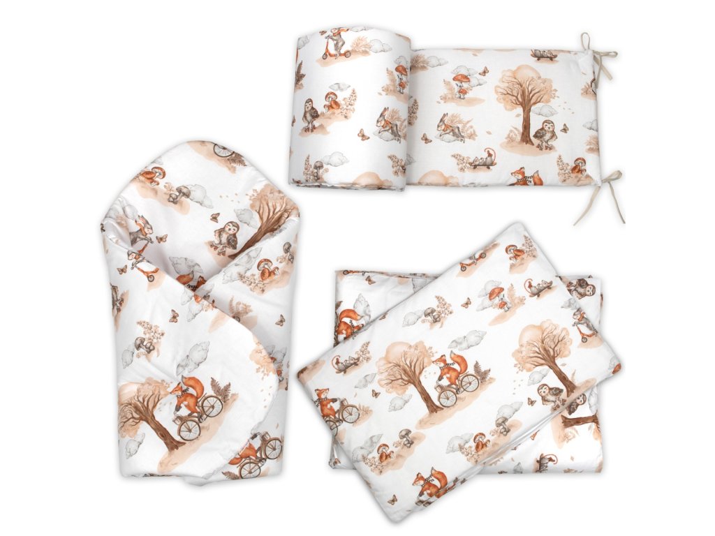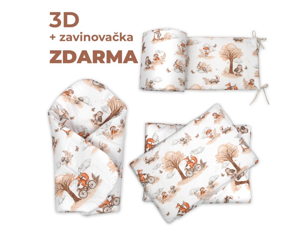 3D Mantinel s posteľnou bielizňou + zavinovačka zadarmo, Líška, béžová, biela