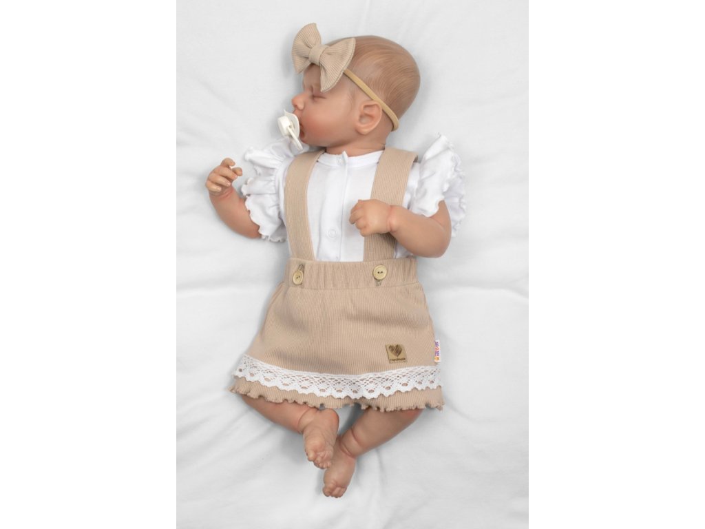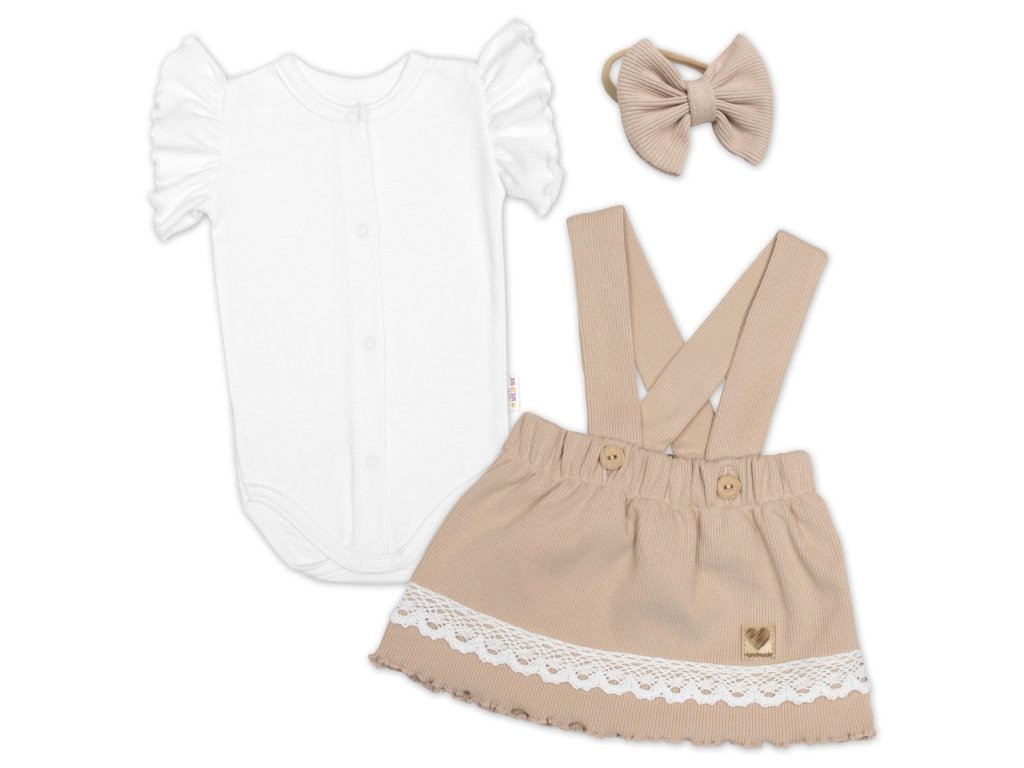 3D sada LADY, bavlna, body kr. rukáv, suknička s láclem, čelenka, béžová/bílá