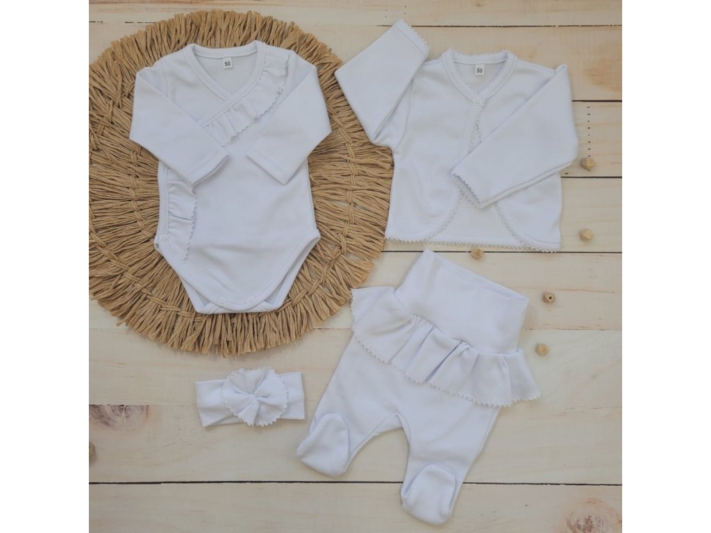 4-dílná bavlněná sada pro miminko do porodnice, bílá