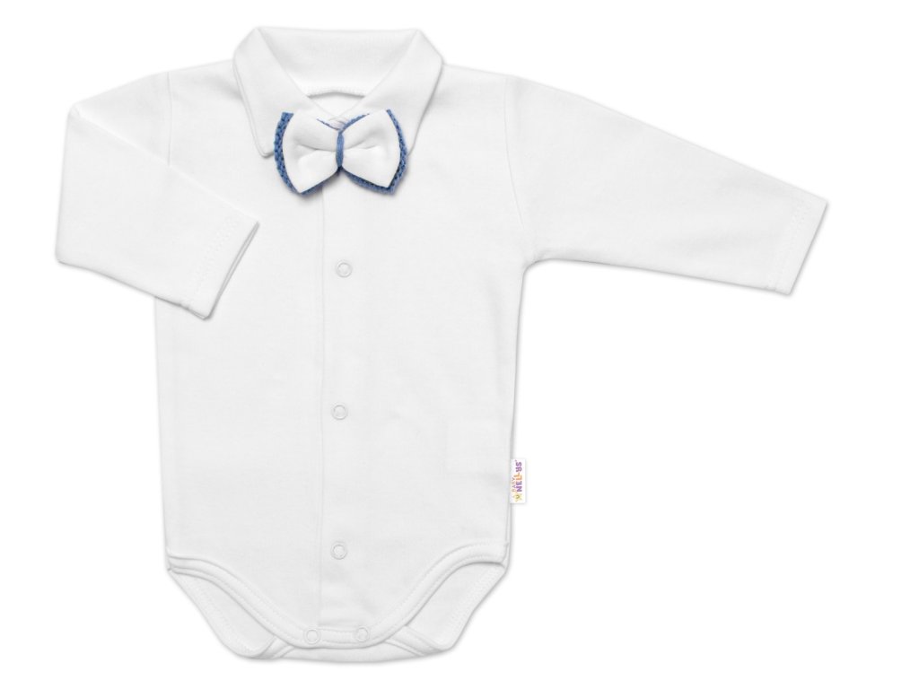 5-dílná pletená sada Baby Nellys, Boy, body, kalhoty, svetr, čepička, motýlek - modrá