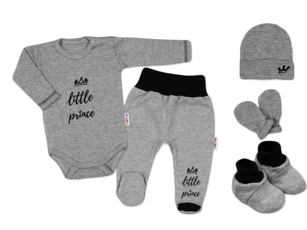 5-ti dílná soupravička do porodnice Little Prince - šedá