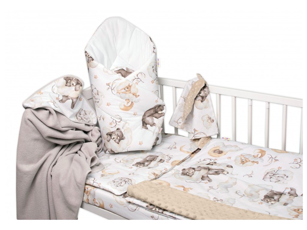 6-ti dílná výhod. sada s dárkem pro miminko Baby Nellys, 120x90 Zvířátka na mráčku, béžová