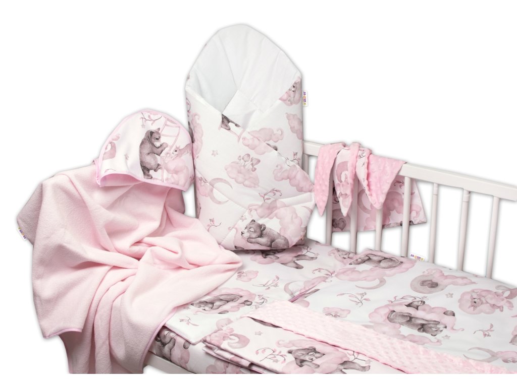 6-ti dílná výhod. sada s dárkem pro miminko Baby Nellys, 120x90 Zvířátka na mráčku, růžová