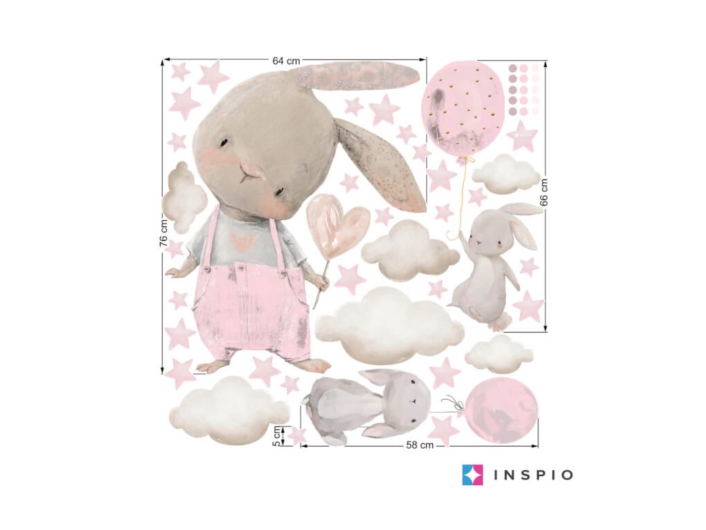 Akvarelové nálepky na stenu - Svetloružové zajačiky