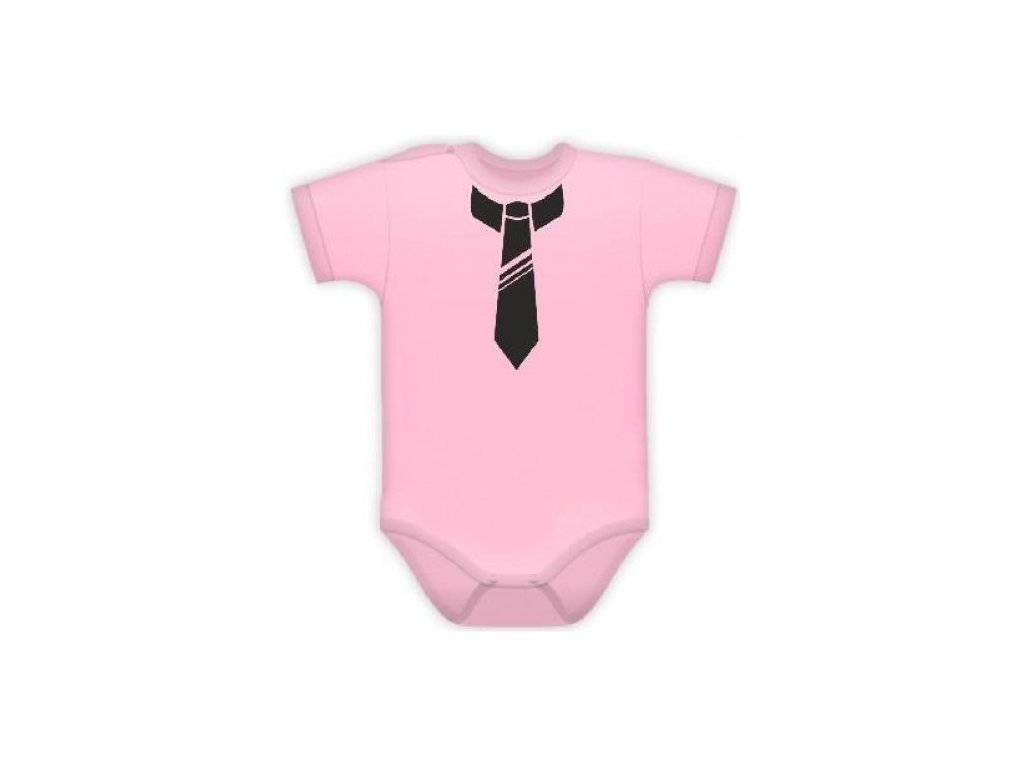 Baby Dejna Body kr. rukávek s potiskem kravaty - sv. růžové