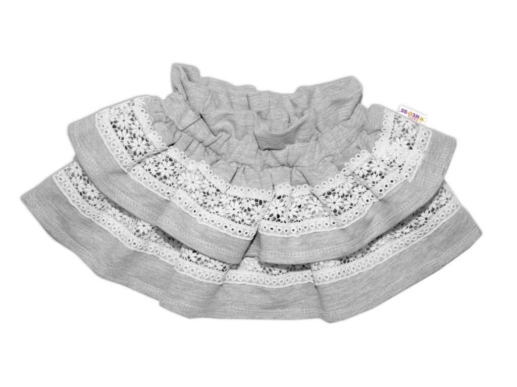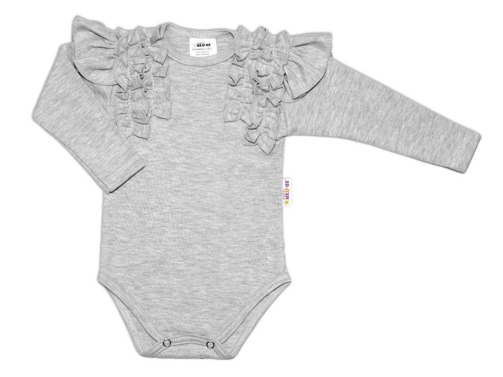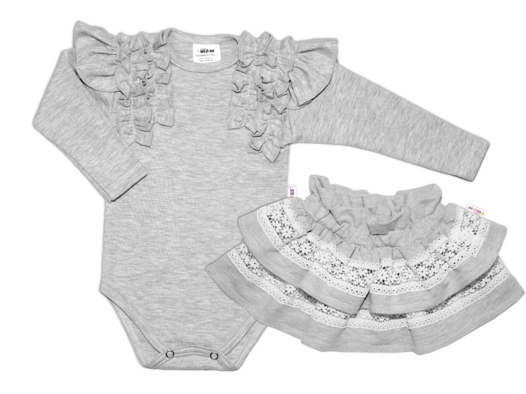 BABY NELLYS 2-dílná sada, body dl.rukáv + suknička s krajkou a volánky, šedá