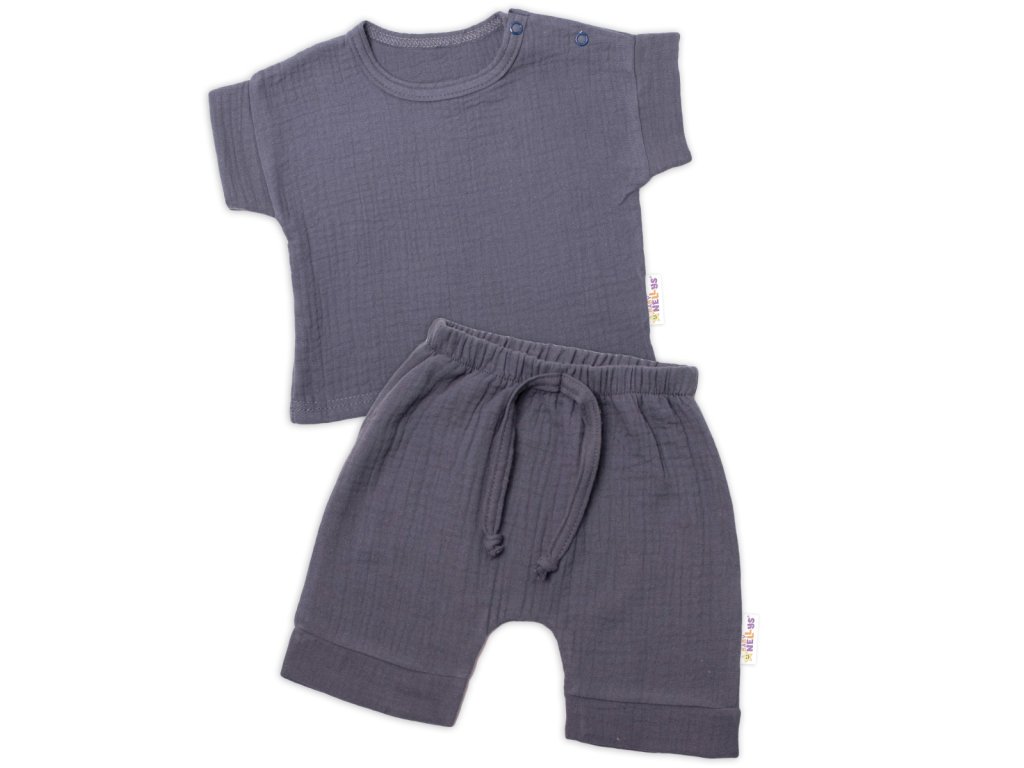 Baby Nellys 2-dílná mušelínová soupravička, tričko + kraťasky BOY, granát