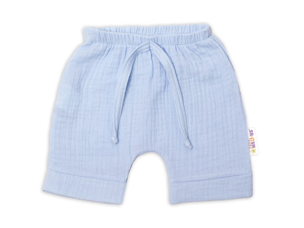 Baby Nellys 2-dílná mušelínová soupravička, tričko + kraťasky BOY, světle modrá
