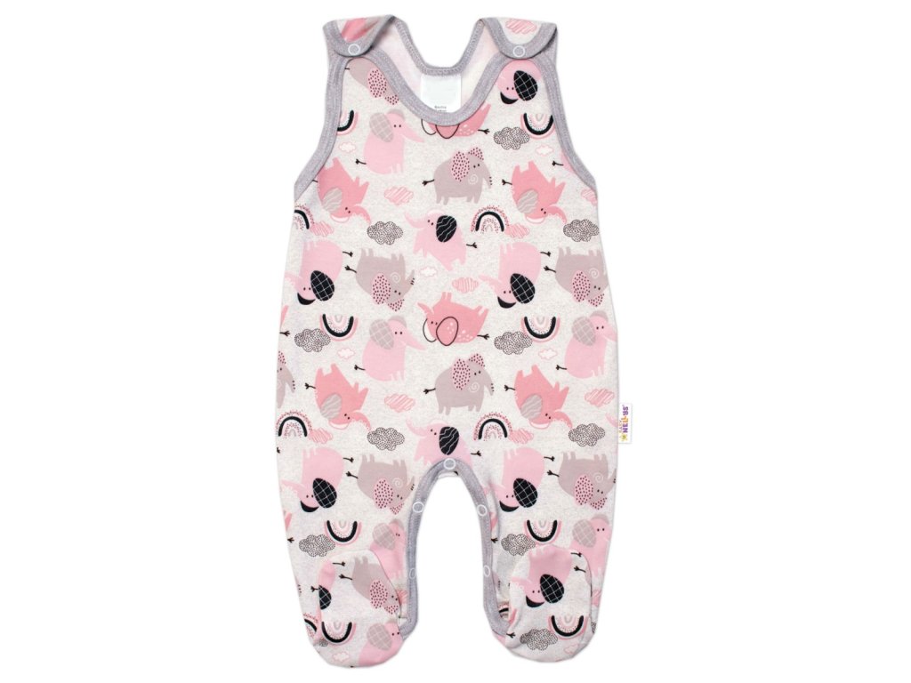 Baby Nellys 2-dílná sada, bavlněné dupačky s košilkou Sloníci, šedá