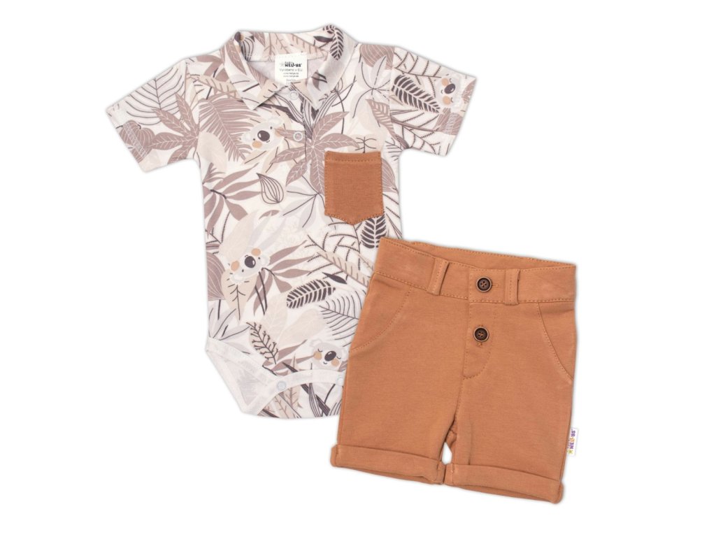 Baby Nellys 2-dílná sada body kr. rukáv, kraťásky, Koala - béžová, hnědá