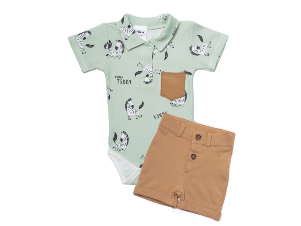 Baby Nellys 2-dílná sada body kr. rukáv, kraťásky, Zebra - mátová, hnědá
