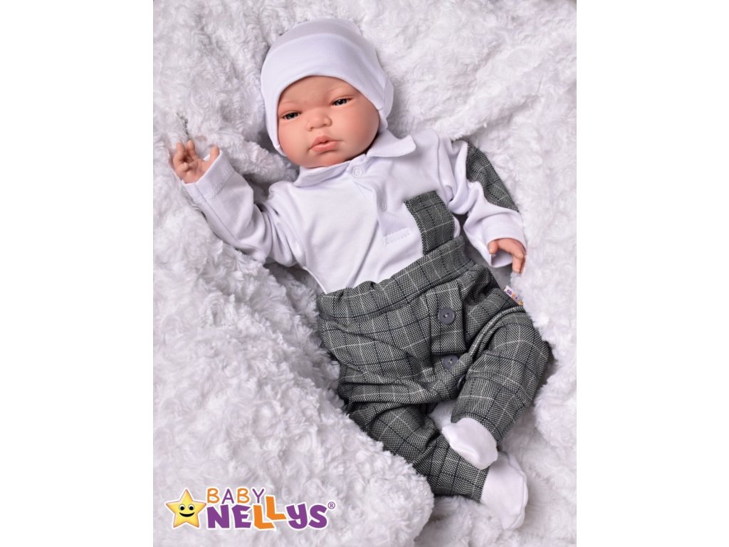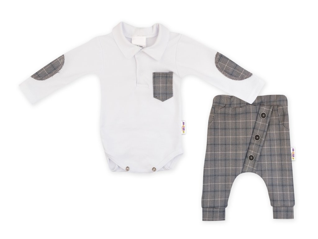 Baby Nellys 2-dílná sada Robert, body s límečkem, kalhoty Baggy - šedé kárko