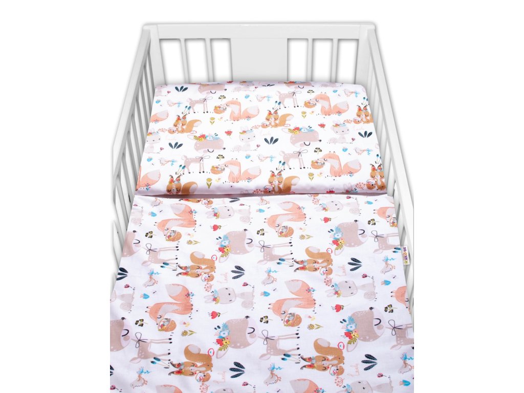 Baby Nellys 2-dílné bavlněné povlečení - Pohádková zvířátka - bílá