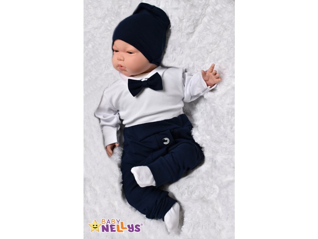 Baby Nellys 3-dílná sada Hubert, body s motýlkem dl.rukáv, tepláčky a čepička - granát