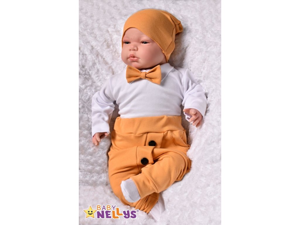 Baby Nellys 3-dílná sada Hubert, body s motýlkem dl.rukáv, tepláčky a čepička - hořčicová