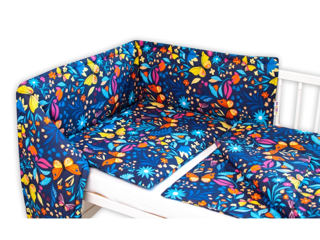 Baby Nellys 3-dílná sada Mantinel s povlečením - Motýlí louka, granát