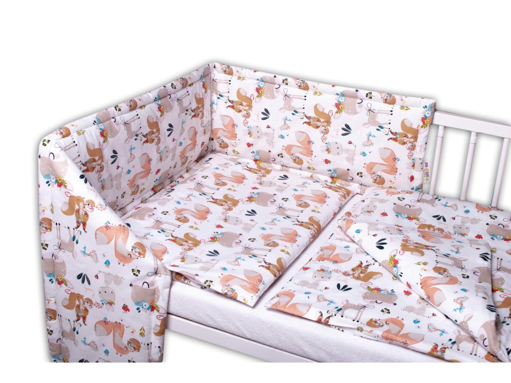 Baby Nellys 3-dílná sada Mantinel s povlečením - Pohádková zvířátka - bílá