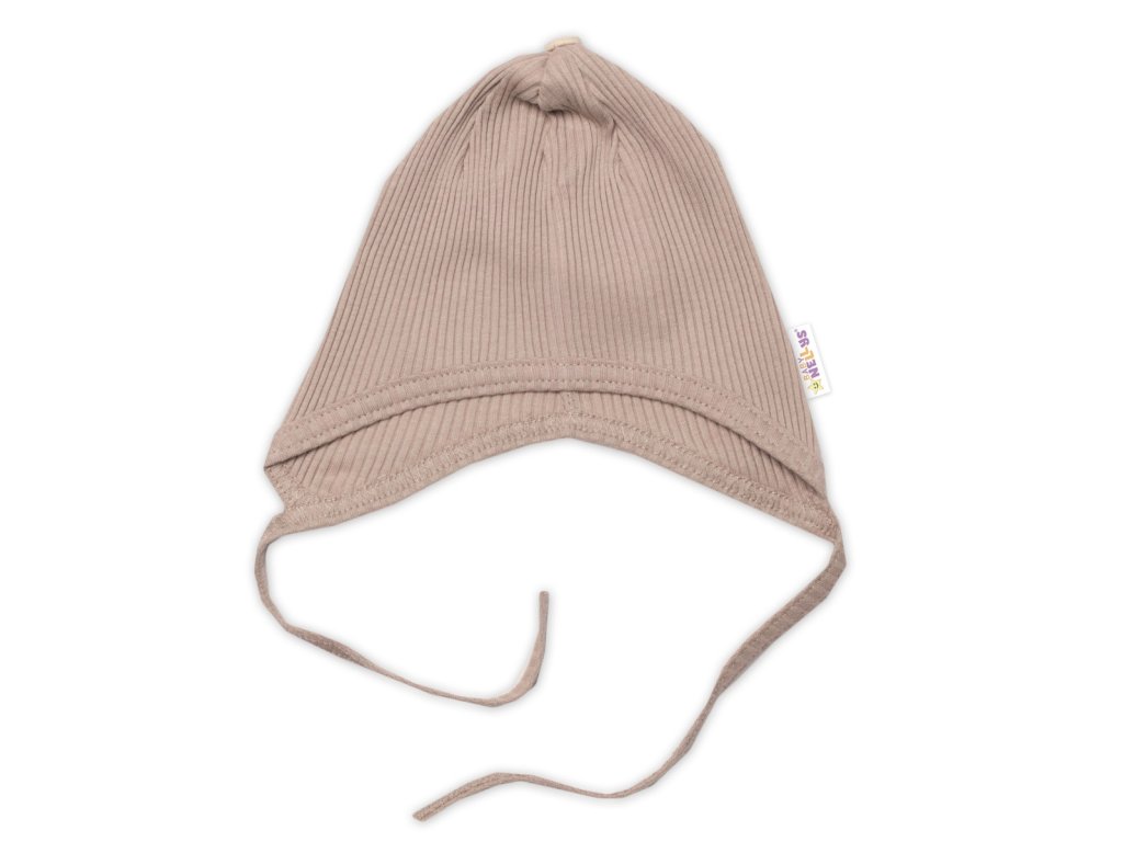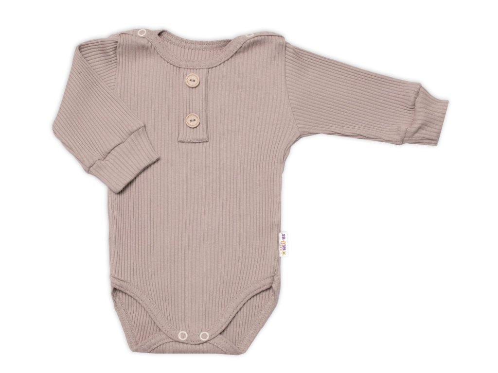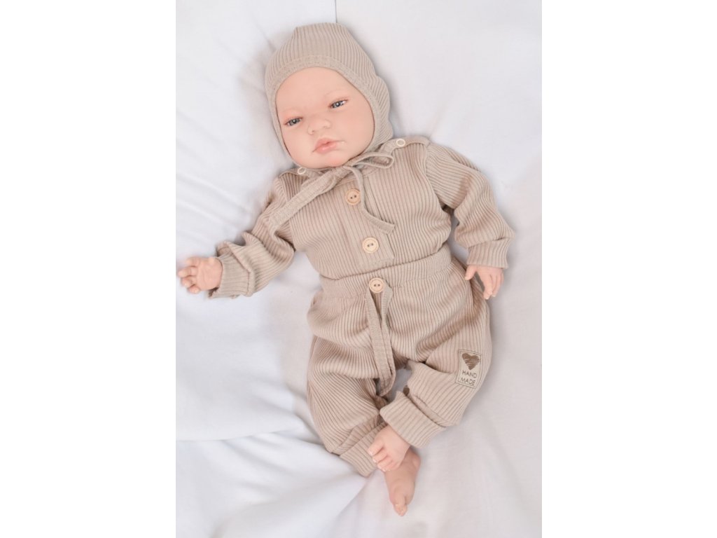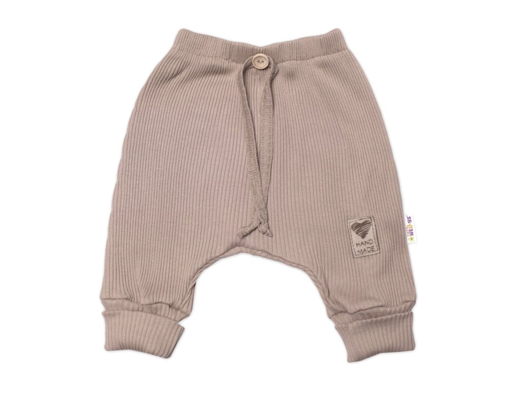 Baby Nellys 3-dílná žebrovaná soupr. Hand Made, body, tepláčky a čepička, béžová