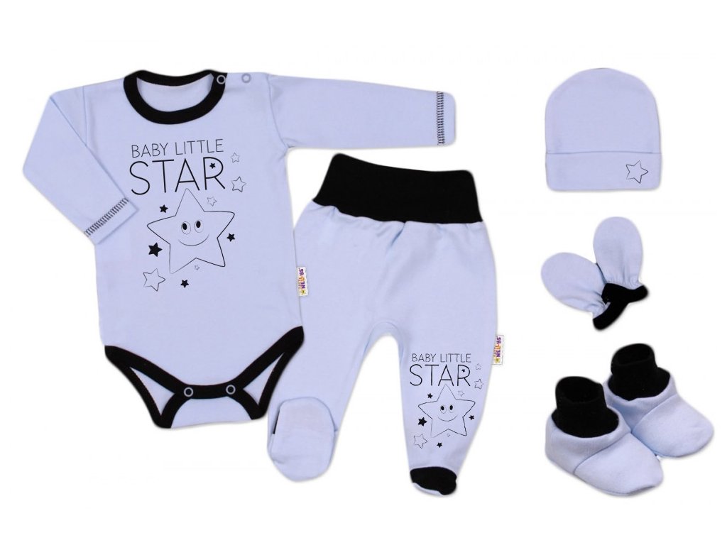 Baby Nellys 5-ti dílná soupravička do porodnice Baby Little Star - modrá