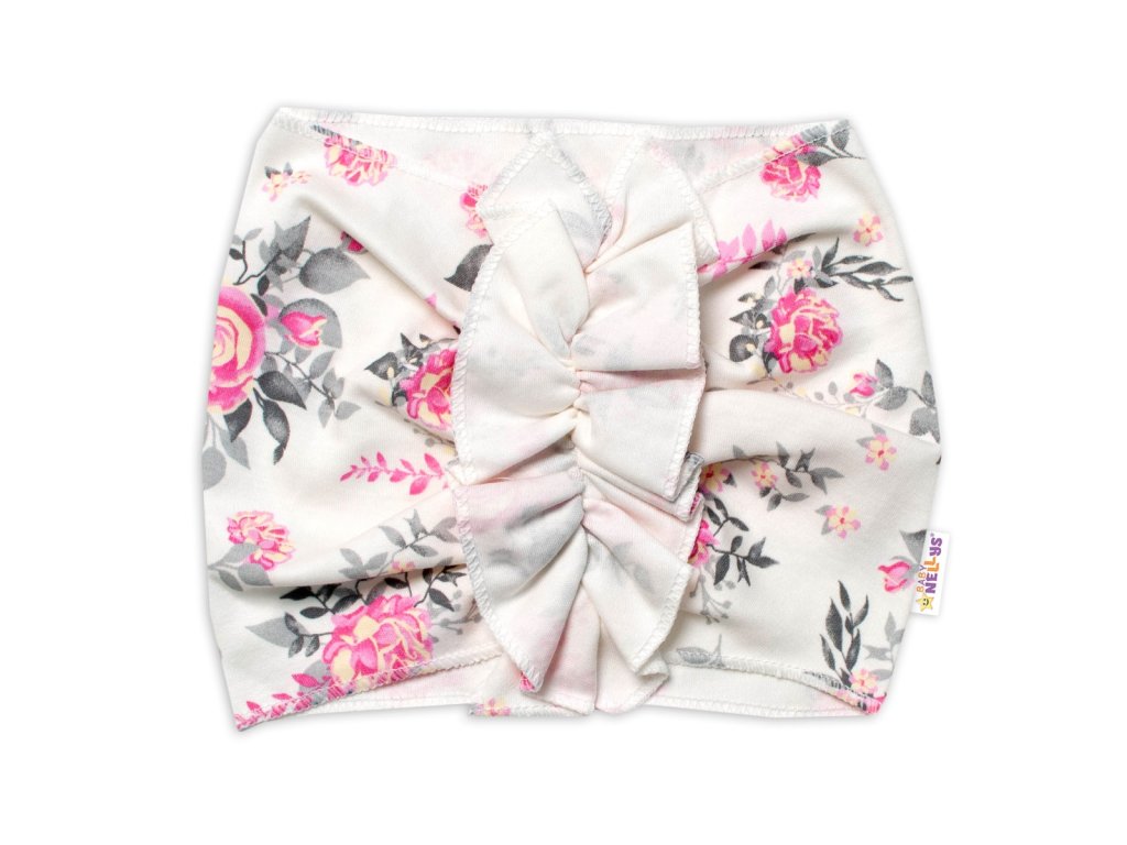 Baby Nellys bavlněná čelenka, turban New Roses, smetanová