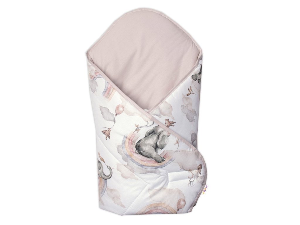 Baby Nellys Bavlnená zavinovačka s kokosovou vložkou, Slon a Dúha, biela/béžová