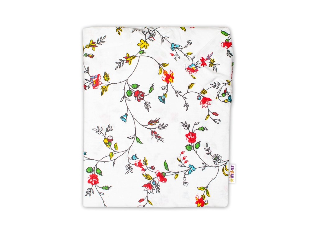 Baby Nellys Bavlněné prostěradlo 60 x 120 - Luční kvítky, bílé