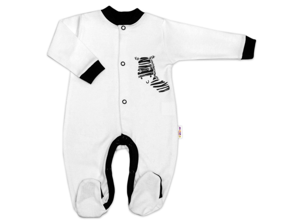 Baby Nellys Bavlněný overálek Zebra - bílý