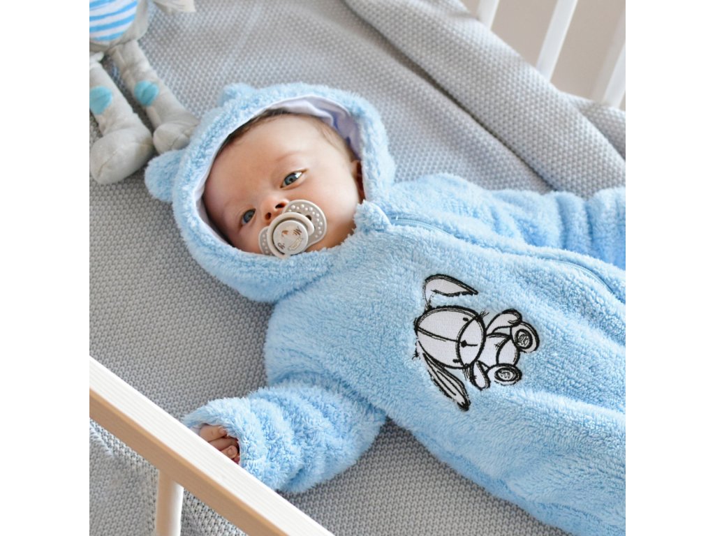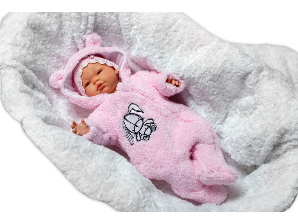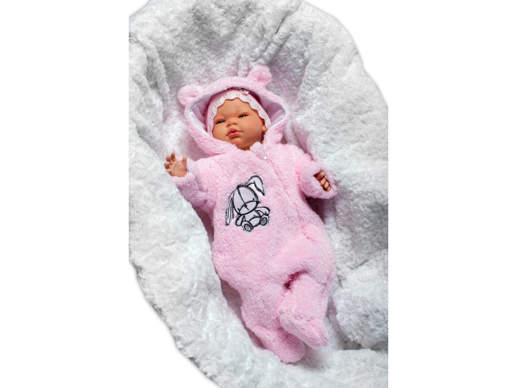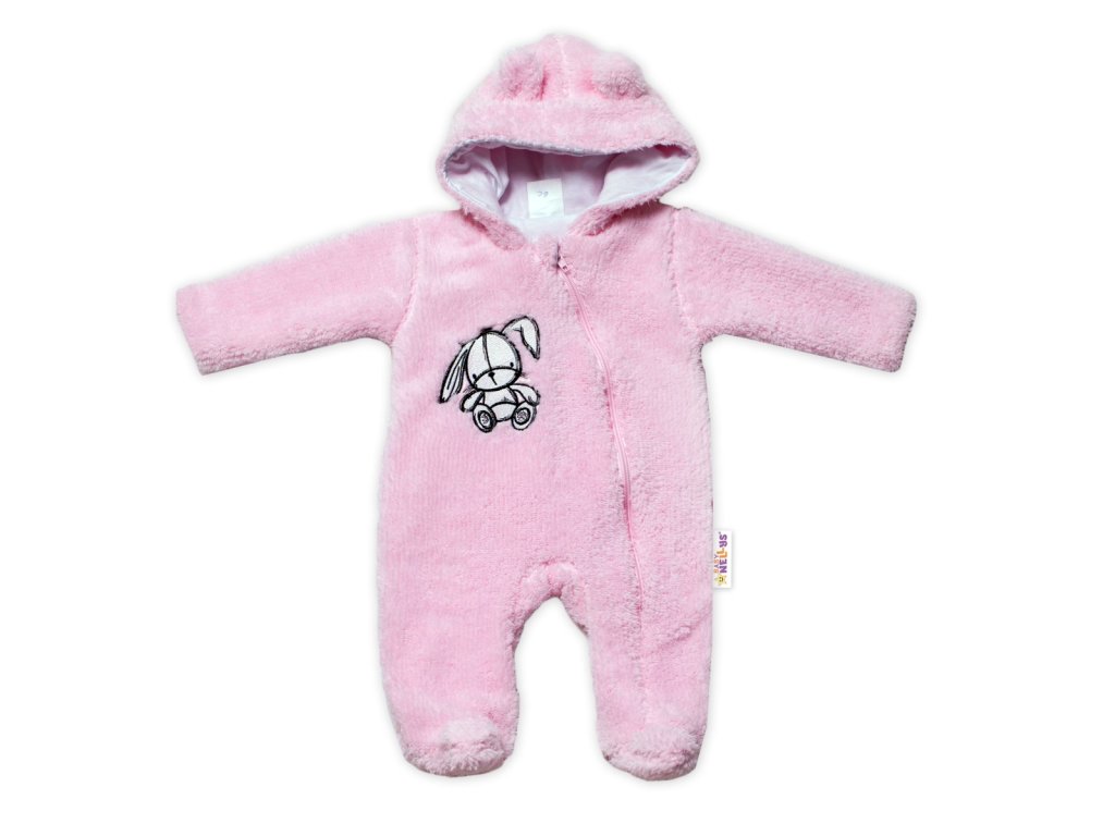 Baby Nellys Chlupáčkový overálek s kapucí, Cute Bunny - světle růžový