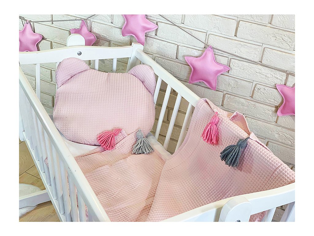 Baby Nellys Detská vaflová 2 dielna sada Macko - starorůžová
