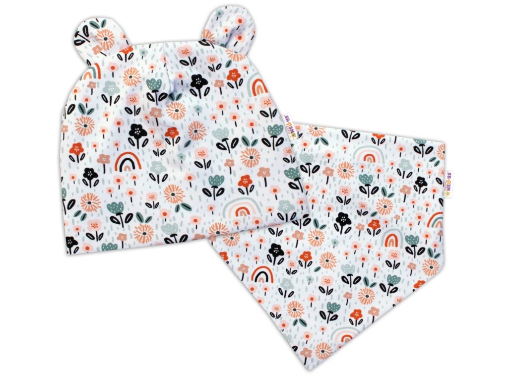 Baby Nellys Dvouvrstvá čepice s oušky + šátek Palouček, smetanová
