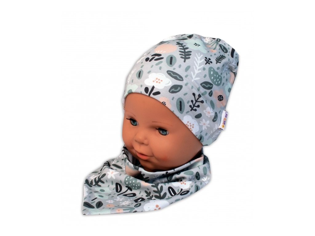 Baby Nellys Dvouvrstvá čepice + šátek Palouček, mátová, 92/98