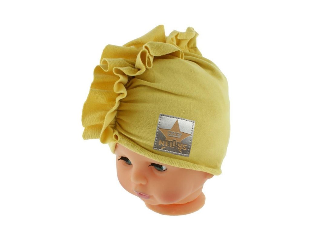Baby Nellys Jarní/podzimní bavlněná čepice - turban, hořčicová