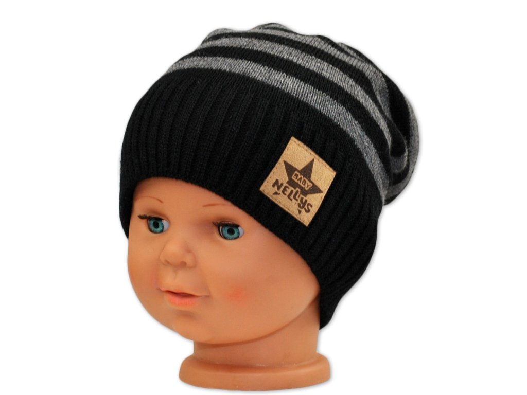 BABY NELLYS Jesenná/zimní prúžkovaná čiapka - čierno/sivá