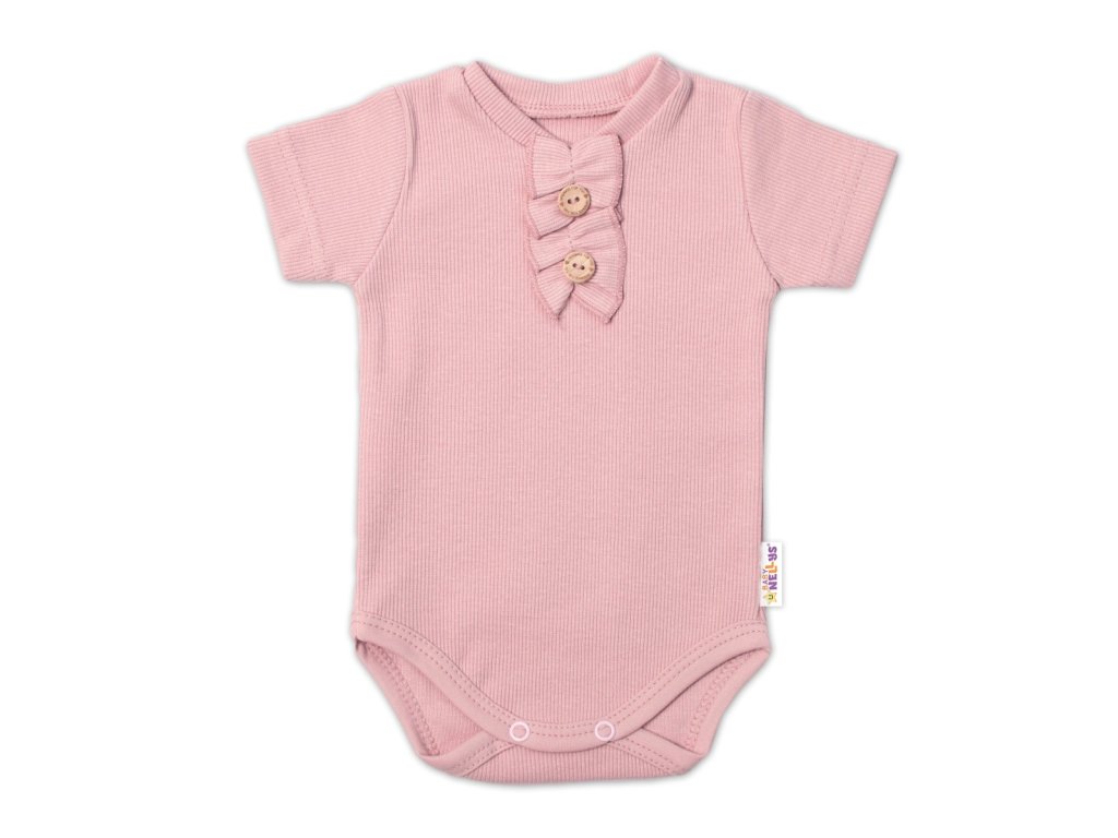 Baby Nellys Kojenecké žebrované body s knoflíčky kr. rukáv, Girl - pudrové