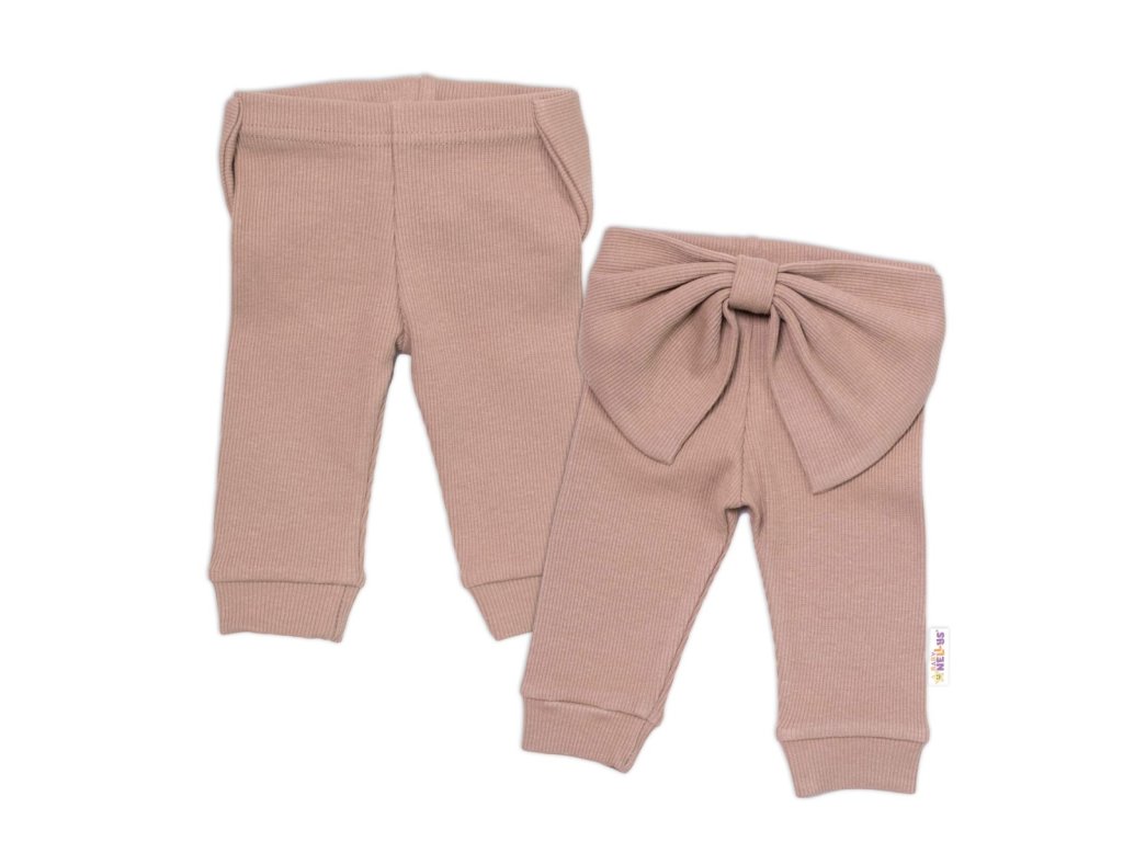 Baby Nellys Kojenecké žebrované legíny s mašlí - béžové