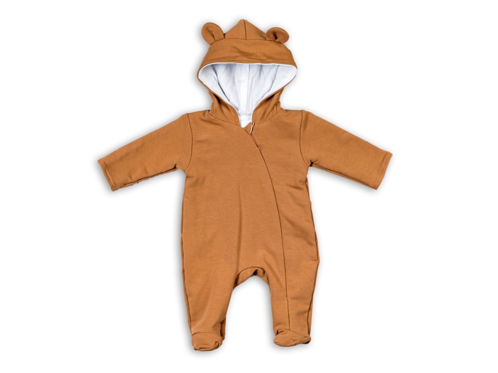 Baby Nellys Kojenecký teplákový overal s kapucí Teddy - karamelový