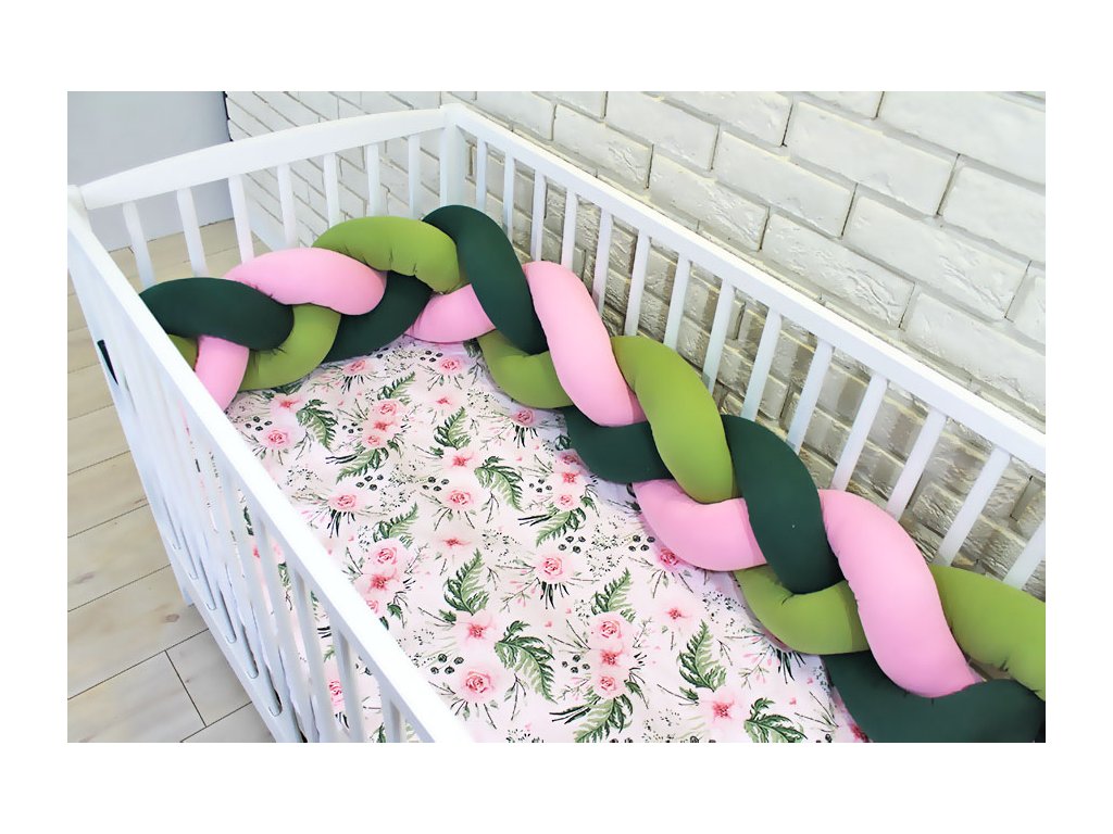Baby Nellys Mantinel pletený cop s povlečením Květinky - zelená, růžová