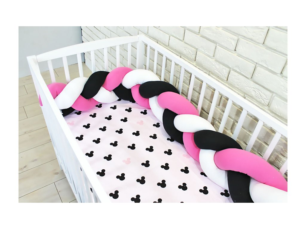 Baby Nellys Mantinel pletený cop s povlečením Mickey - černá, bílá, růžová