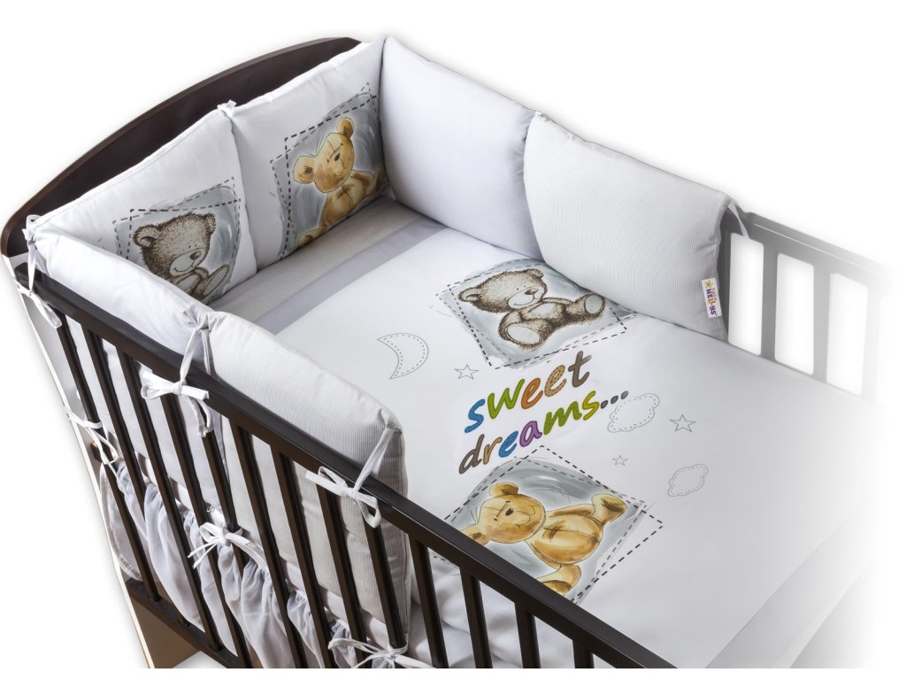 Baby Nellys Povlečení s polštářkovým mantinelem Sweet Dreams by TEDDY - šedý