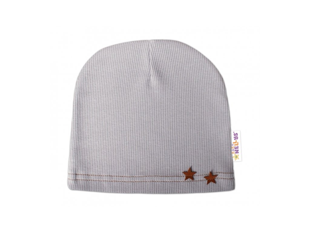 Baby Nellys Rebrovaná čiapka Hviezdičky - šedá