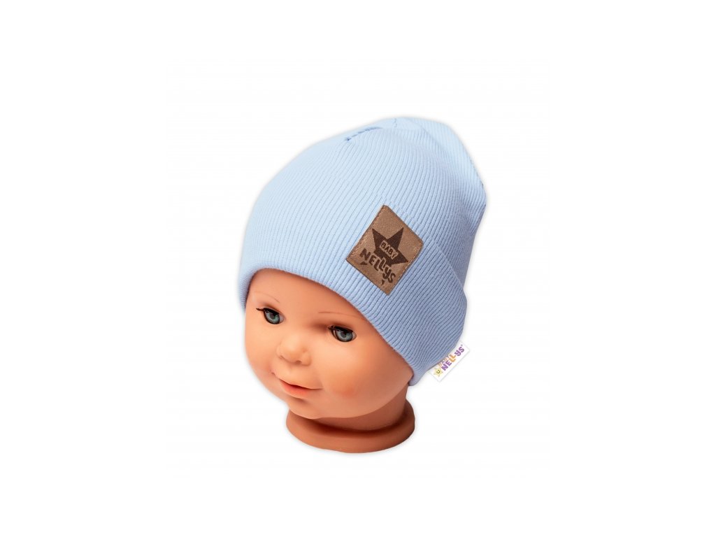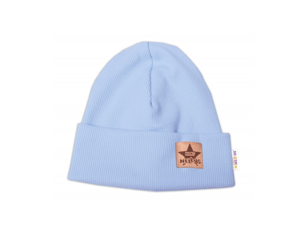 Baby Nellys Rebrovaná dvojvrstvová čiapka s lemom - sv. modrá