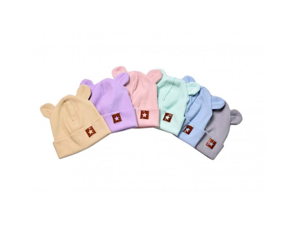 Baby Nellys Rebrovaná dvojvrstvová čiapka s uškami TEDDY - béžová