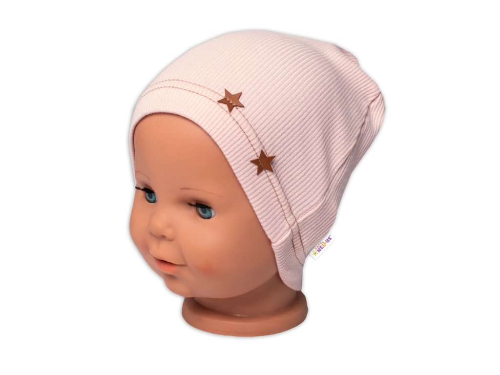 Baby Nellys Žebrovaná čepice Hvězdičky - pudrová