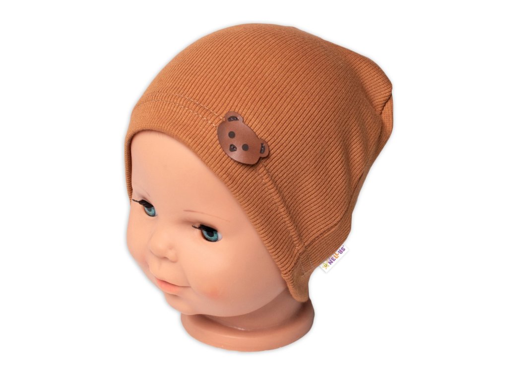Baby Nellys Žebrovaná čepice Medvídek - hnědá